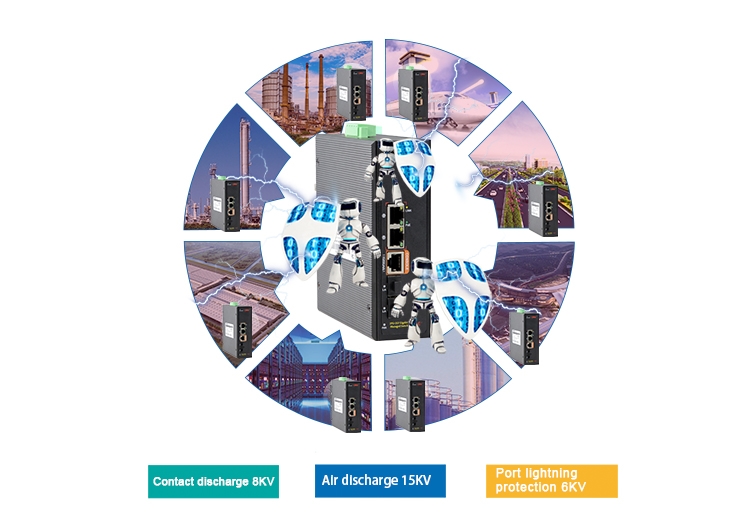 ◇ Contact discharge 8KV, air discharge 15KV; port lightning protection common-mode 4KV, differential mode 2KV;