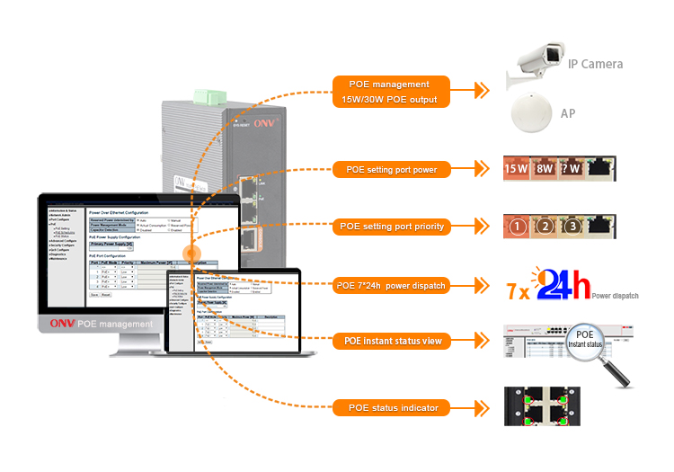PoE network management and fast Ring function