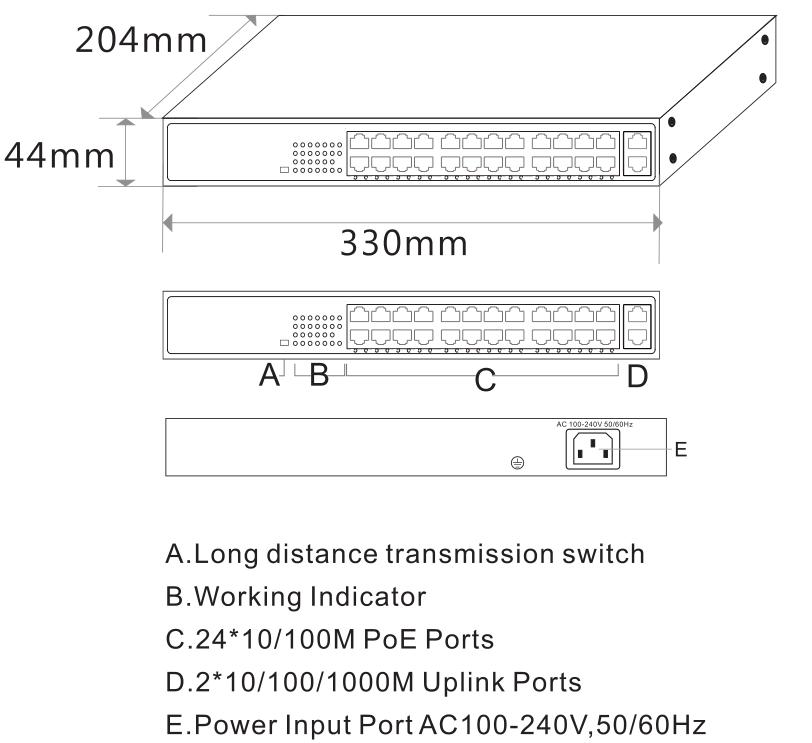 ◇ The user-friendly panel, it can show the device status through the LED indicator of PWR,PoE.