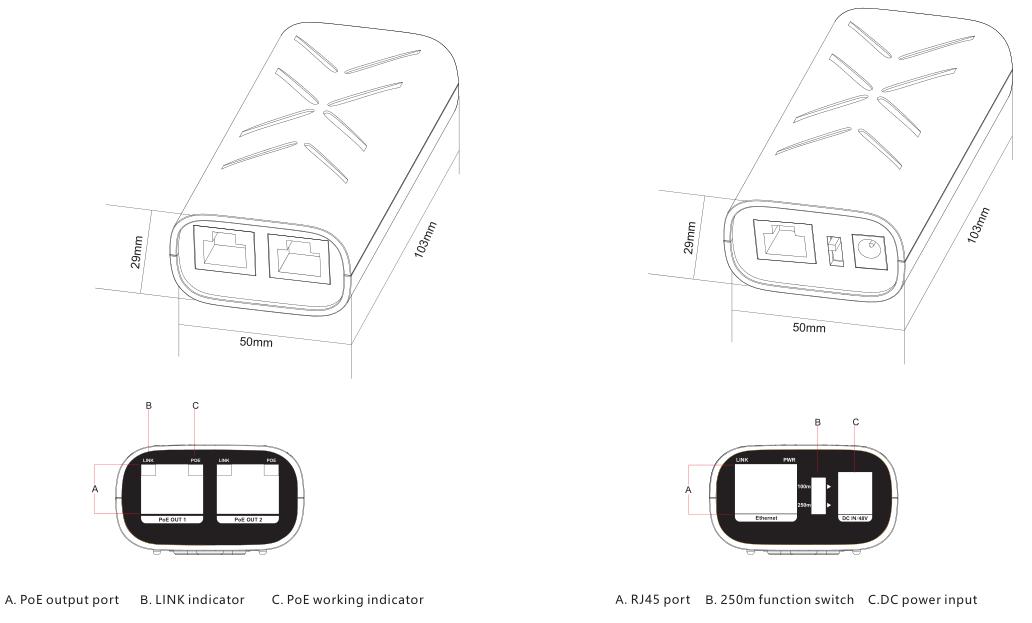 ◇ The user-friendly panel, it can show the device status through the LED indicator of PWR,Link, PoE.