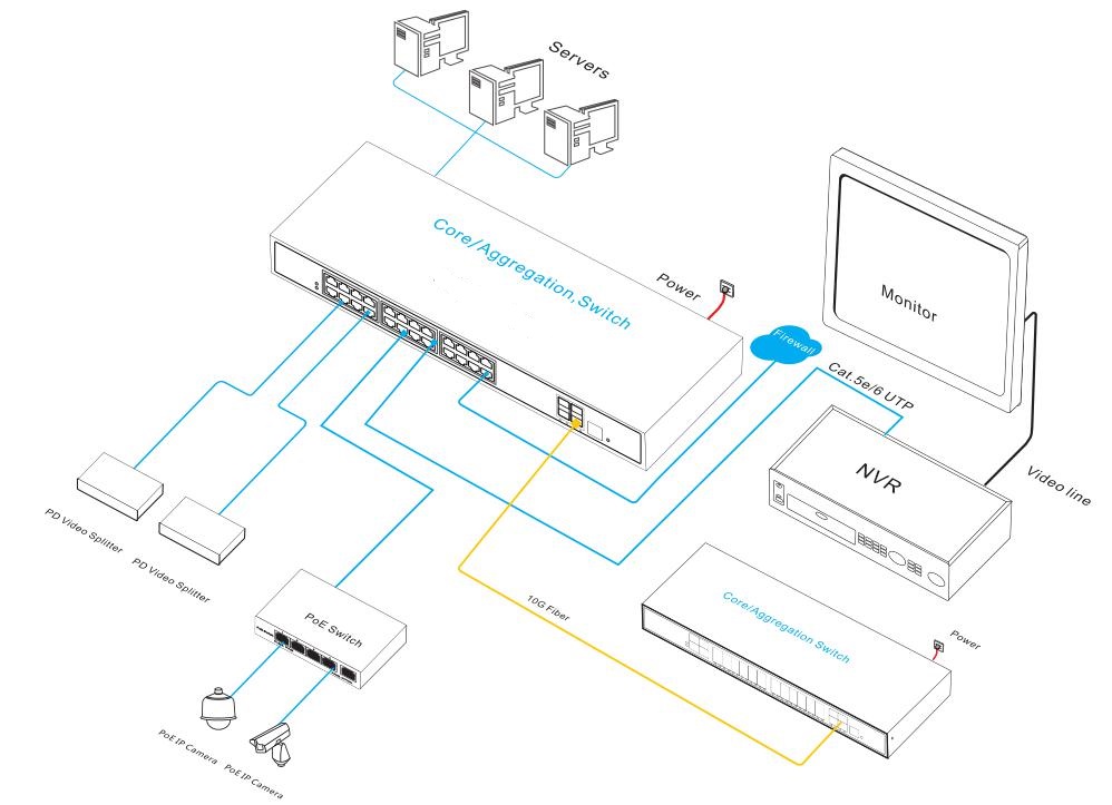 | Management | One-key recovery Cable Diagnose, LLDP Web Management (HTTPS) NTP, System work log, Ping Test CPU instant utilization status view Console/AUX Modem/Telnet/SSH2.0 CLI Download & Management on FTP, TFTP, Xmodem, SFTP, SNMP V1/V2C/V3 ONV NMS – smart network management system platform (LLDP+SNMP) Multiple Configuration File | |