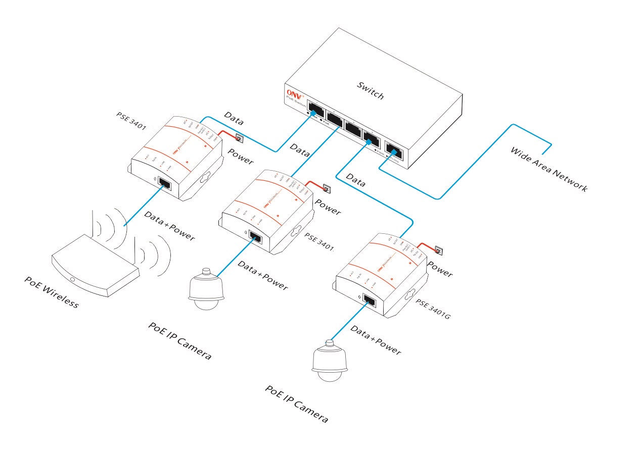 PoE injector can provide a simple and economical solution for high performance Ethernet PoE power supply and data communication. Easy to use and install, superior performance and cost-effective, which is an ideal choice for customer to improve the projects’ quality. It’s an efficient engineering solution to meet the requirement of the reliability system and simplified installation for remote places without power supply or unable to use Ethernet cable to supply power.