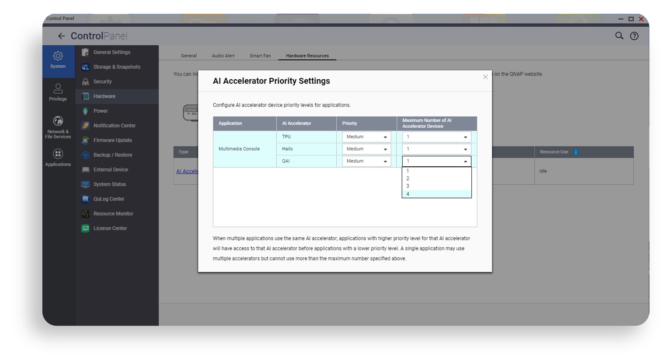 Thiết bị QAI-U100 có thể dễ dàng lắp đặt thông qua chuẩn USB 3.2 Gen1 Type-A. Có thể lắp đặt hai thiết bị QAI-U100 trên cùng một NAS, bạn có thể trải nghiệm sức mạnh tính toán lên đến 6 TOPS